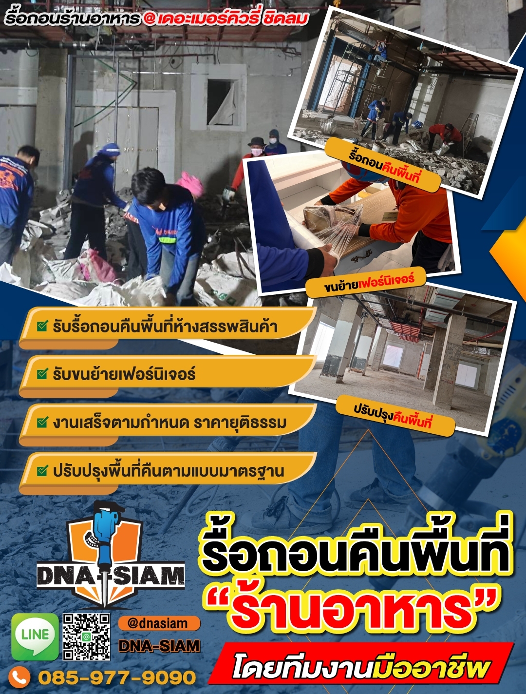 ดีเอ็นเอ สยาม ผู้เชี่ยวชาญงานรื้อถอนร้านค้าและร้านอาหารครบวงจร